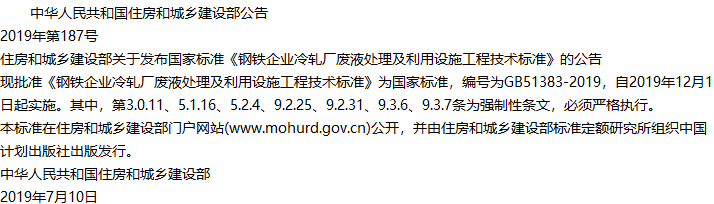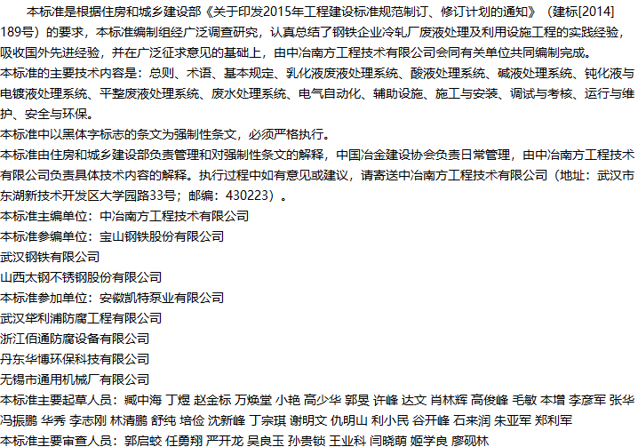 钢铁企业冷轧厂废液处理及利用设施工程技术标准收藏