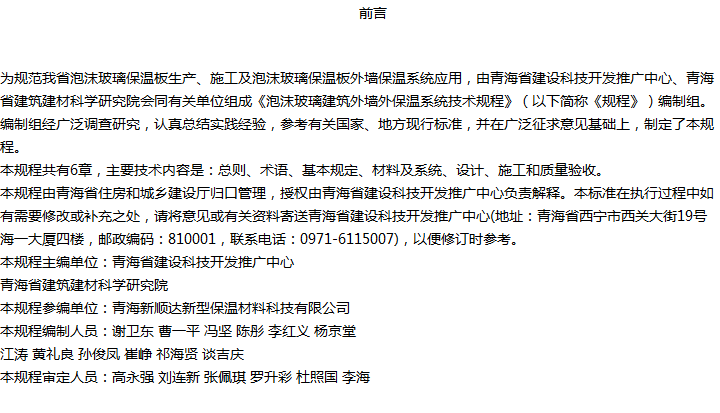 泡沫玻璃建筑外墙外保温系统技术规程收藏