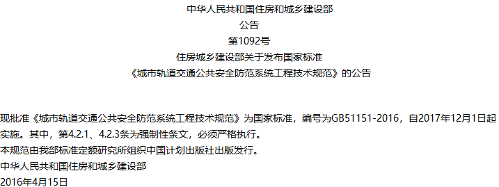 城市轨道交通公共安全防范系统,工程技术规范收藏