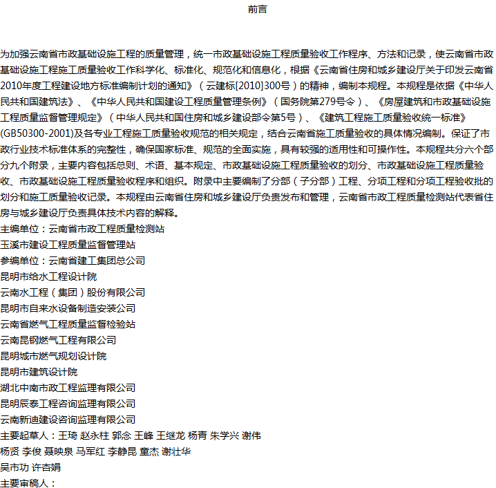 云南省市政基础设施工程施工质量验收统一规程收藏