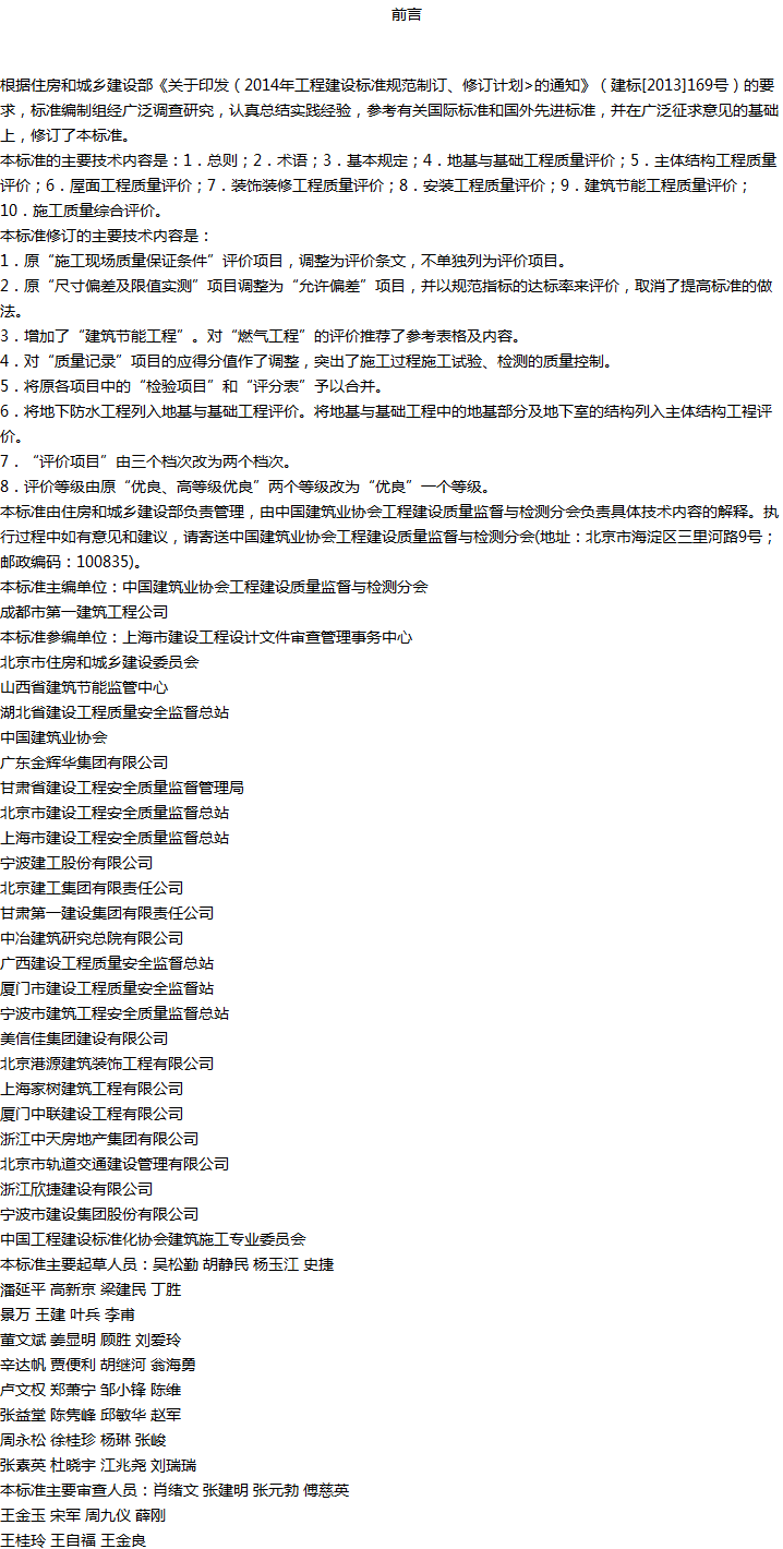 建筑工程施工质量评价标准收藏