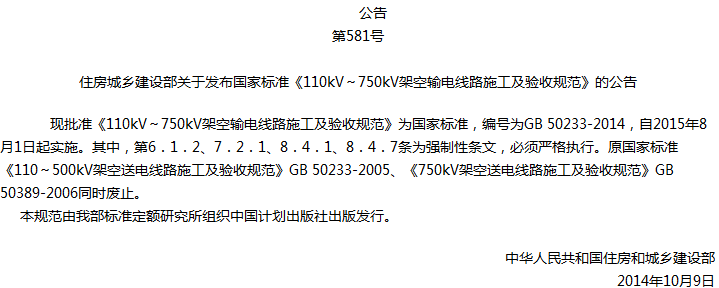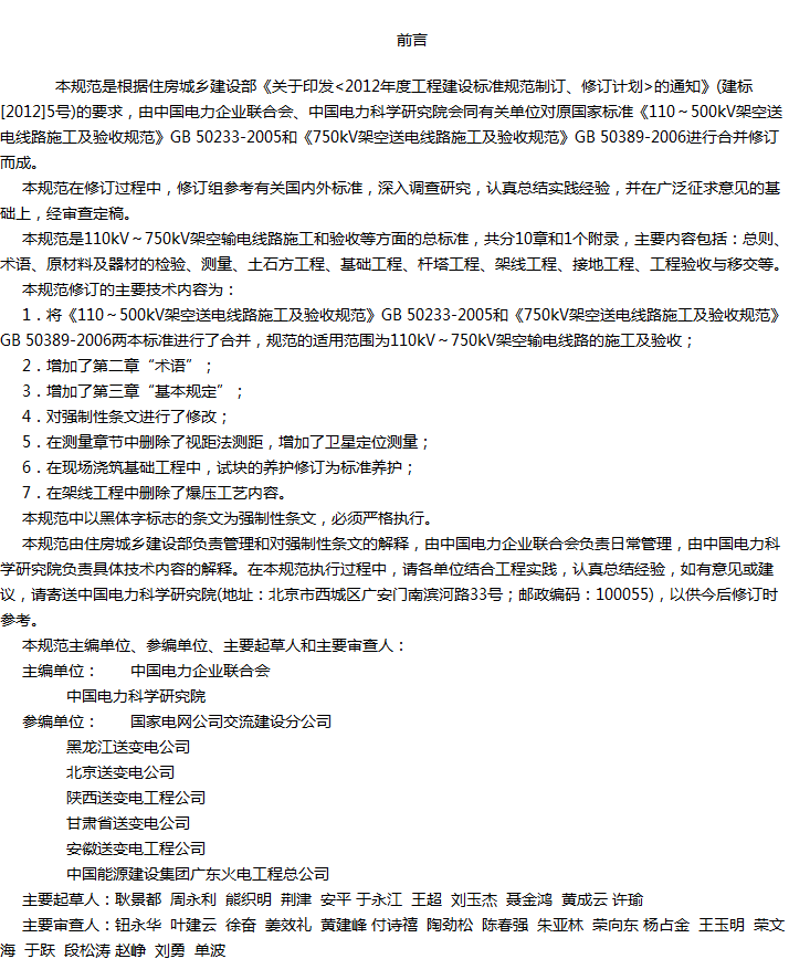110kV~750kV架空输电线路施工及验收规范收藏