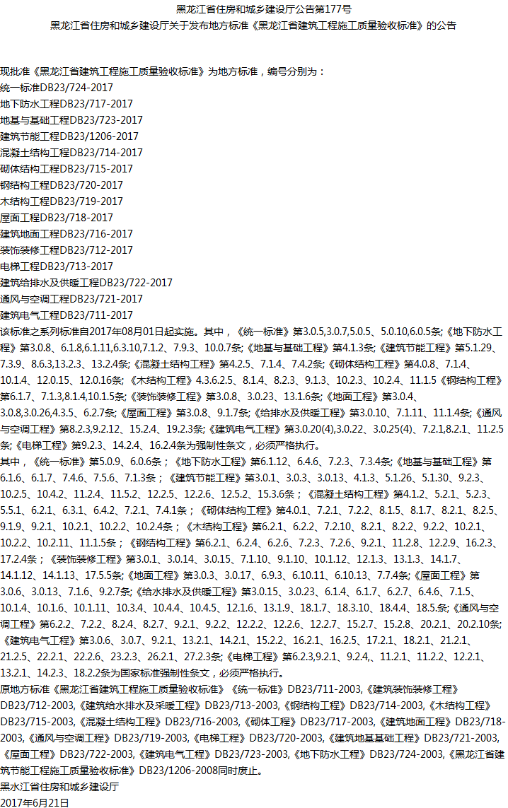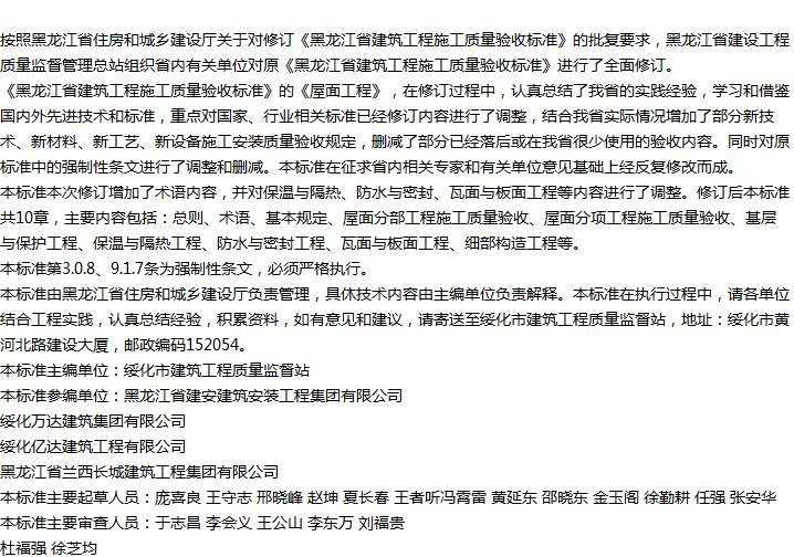 黑龙江省建筑工程施工质量验收标准 屋面工程收藏
