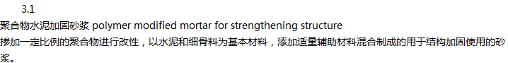 本文件参加起草单位:北京中德新亚建筑技术有限公司、北京联合荣大工程材料股份有限公司、苏州市兴邦化学建材有限公司、上海牛元工贸有限公司、四川省建筑科学研究院有限公司、中国建筑科学研究院有限公司、中建材中岩科技有限公司、湖南固特邦土木技术发展有限公司、河北达奥达建材科技股份有限公司、泛华建设集团有限公司、南京晶磊兴建材有限公司、山东城际轨道交通科技股份有限公司、大连志恒众鑫建筑工程材料有限公司、黑龙江磐云建筑材料有限公司、上海宝生新型建材有限公司、赛固建材科技有限责任公司、天津炬实科技发展股份有限公司、北京景岩科技发展有限公司。本文件主要起草人:蒋玉川、王清、葛庭洪、李伟、梁爽、王阳、毛荣良、章荣会、郭春霞、姚秋来、彭勃、王术生、姚俊海、张宇燕、王涛、吴文军、徐兆亮、张金凤、高学江、高云龙、王文卓、颜井磊、赵宝铖、裴须强、白子刚、王云彩、谢龙、余学良、刘玉玲、詹齐龙。本文件为首次发布。