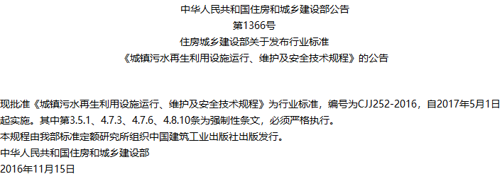 城镇污水再生利用设施运行、维护及安全技术规程收藏