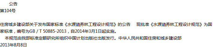 水源涵养林工程设计规范收藏