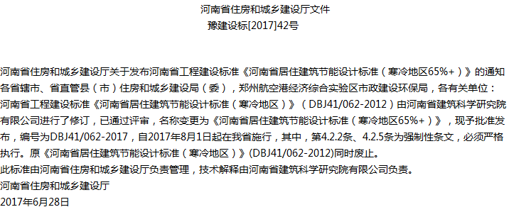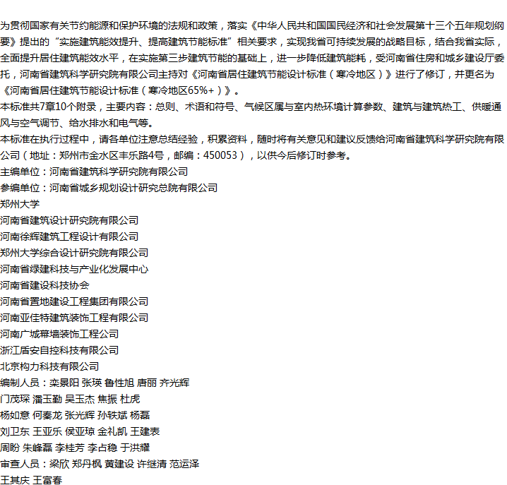河南省居住建筑节能设计标准(寒冷地区65%+)收藏