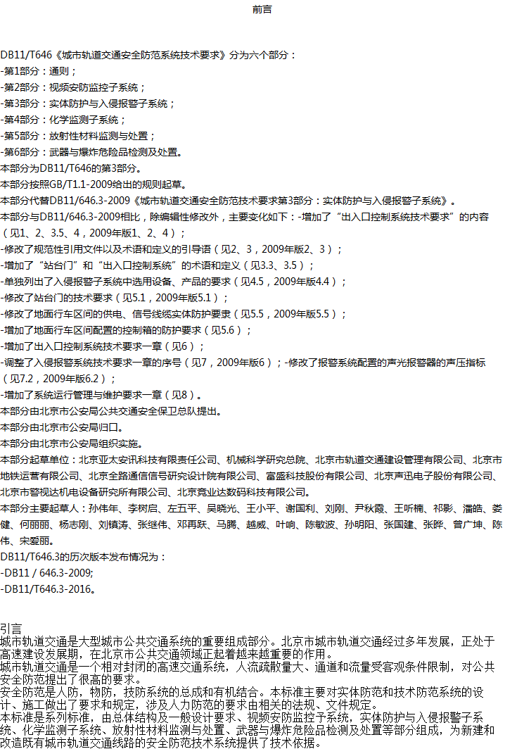 城市轨道交通安全防范系统技术要求第3部分:实体防护与入侵报警子系统收藏