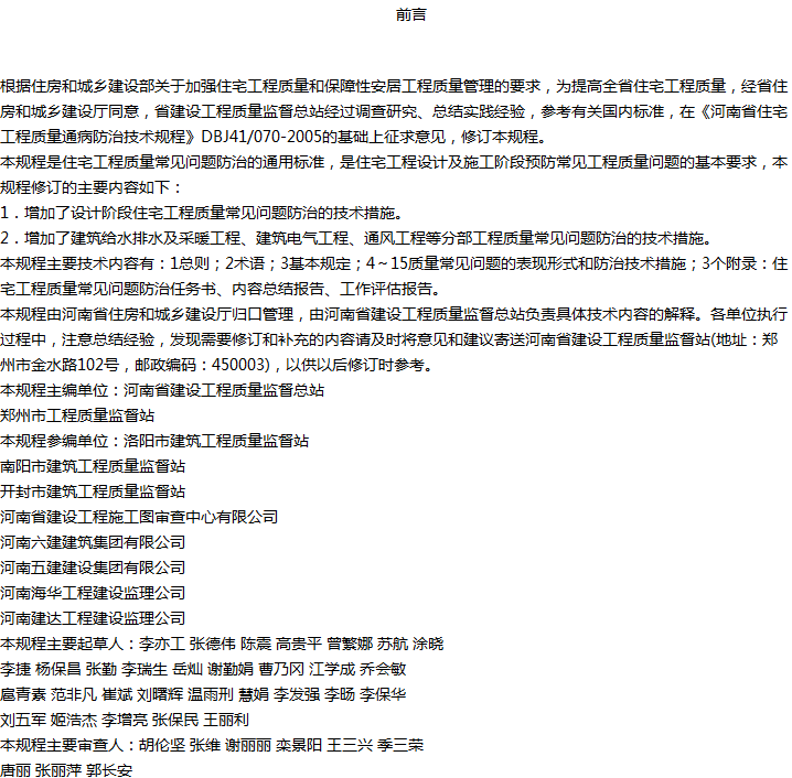 住宅工程质量常见问题防治技术规程收藏