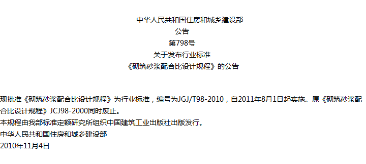 砌筑砂浆配合比设计规程收藏