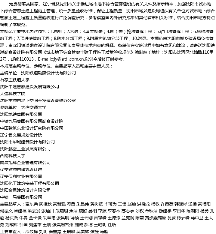 城市地下综合管廊土建工程施工质量验收规范收藏