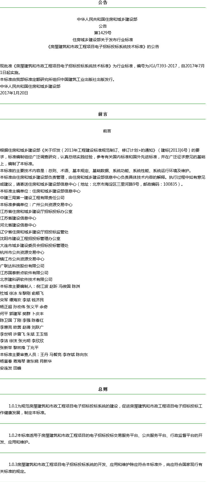 房屋建筑和市政工程项目电子招标投标系统技术标准收藏