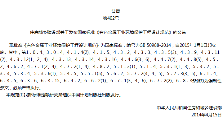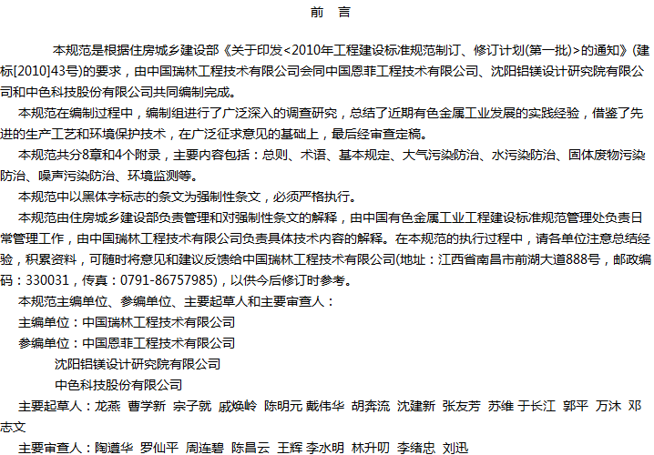 有色金属工业环境保护工程设计规范收藏