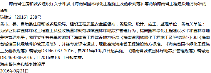 海南省园林绿化工程施工及验收规范收藏