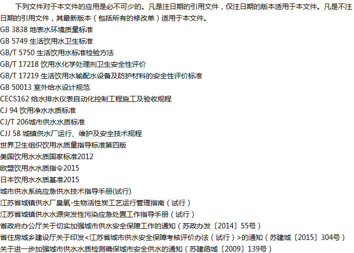 江苏省城市自来水厂关键水质指标控制标准收藏