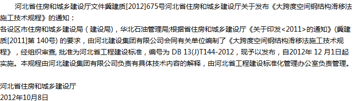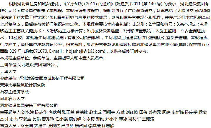 大跨度空间钢结构滑移法施工技术规程收藏