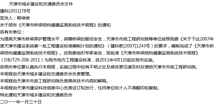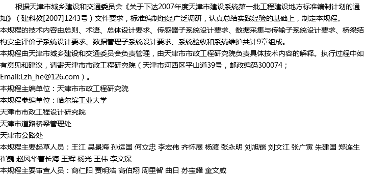 天津市桥梁结构健康监测系统技术规程收藏