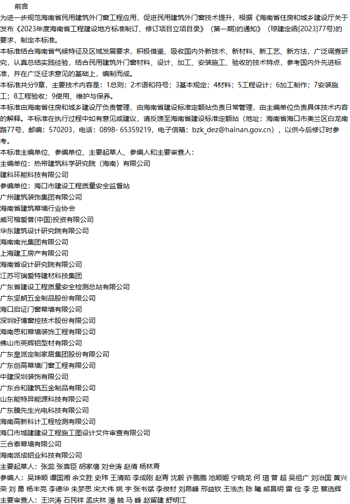海南省民用建筑外门窗工程技术标准收藏