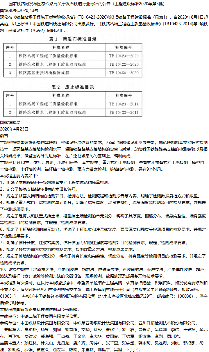 铁路路基支档结构检测规程收藏