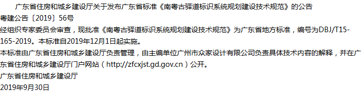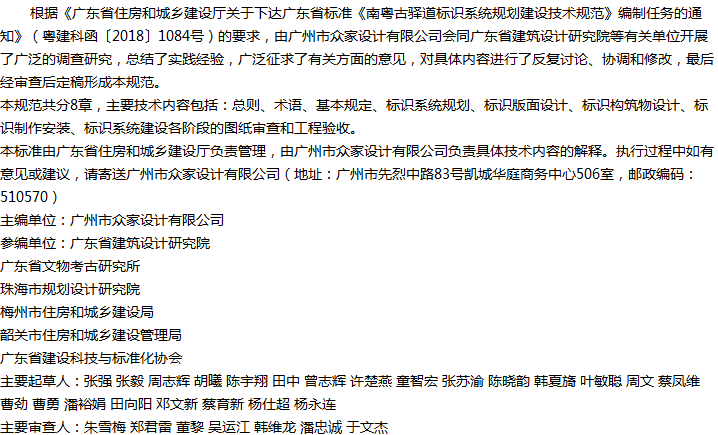 1.0.5南粤古驿道标识系统规划建设过程中,工程技术文件对建设施工质量要求、工程质量检测和验收的要求不得低于本规范的规定,并符合国家和广东省现行相关标准的规定。