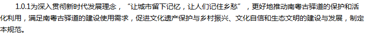 1.0.2本规范适用于广东省内南粤古驿道本体和连接线及其相关的周边空间范围内的新建、扩建和改建的标识系统规划、设计、制作、施工、检测和验收。
