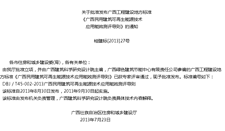 广西民用建筑可再生能源技术应用 能效测评导则收藏