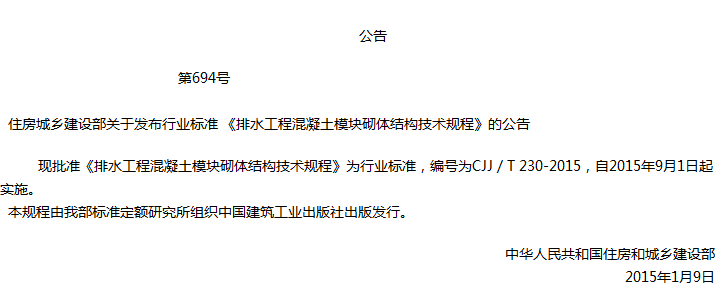 排水工程混凝土模块砌体结构技术规程收藏