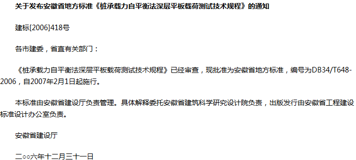 桩承载力自平衡法深层平板载荷测试技术规程收藏