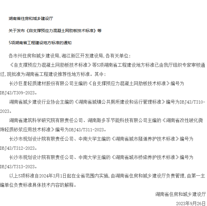 湖南省改性玻化微珠轻质砂浆应用技术标准收藏