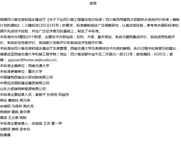 四川省民用建筑太阳能热水系统评价标准收藏