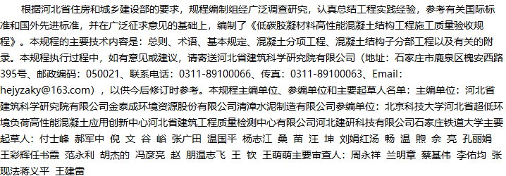低碳胶凝材料高性能混凝土结构工程施工质量验收规程收藏