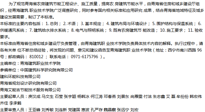 当前位置:首页 > 标准规范 > 青海省农房建筑节能建设标准 <返回