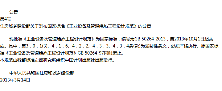 工业设备及管道绝热工程设计规范收藏