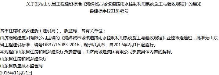 海绵城市城镇道路雨水控制利用系统施工与验收规程收藏