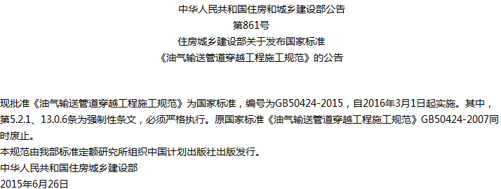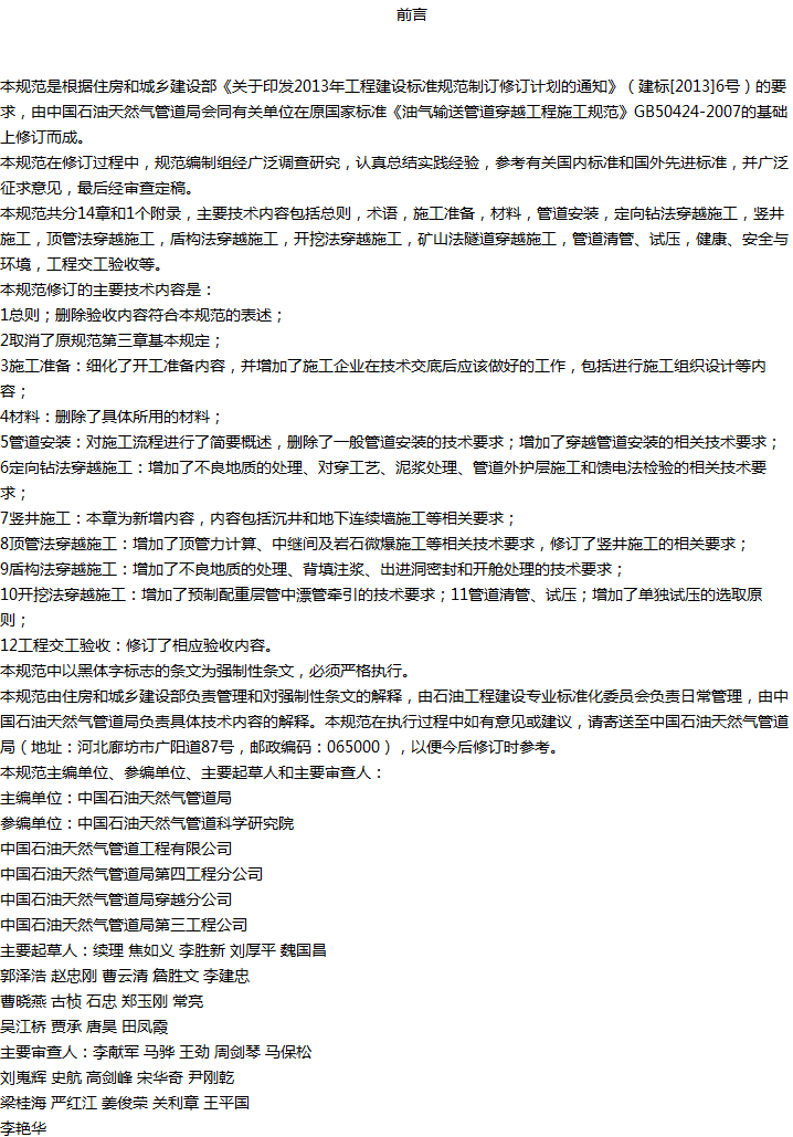 油气输送管道穿越工程施工规范收藏