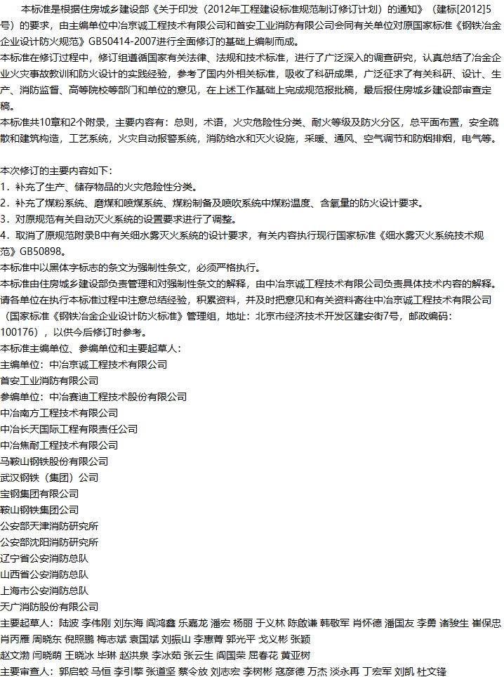 当前位置:首页 > 标准规范 > 钢铁冶金企业设计防火标准 <返回