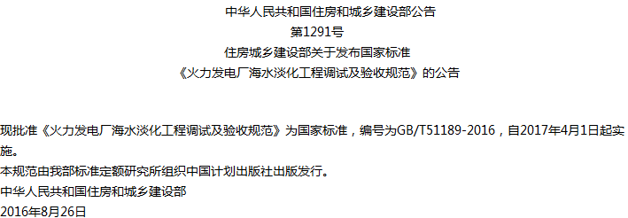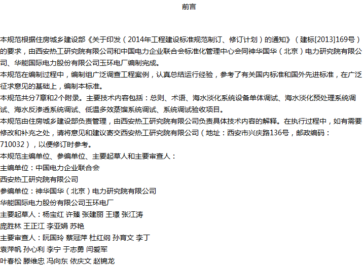 火力发电厂海水淡化工程调试及验收规范收藏
