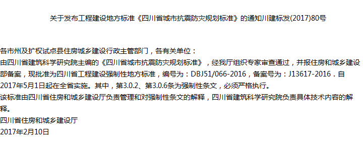 四川省城市抗震防灾规划标准收藏