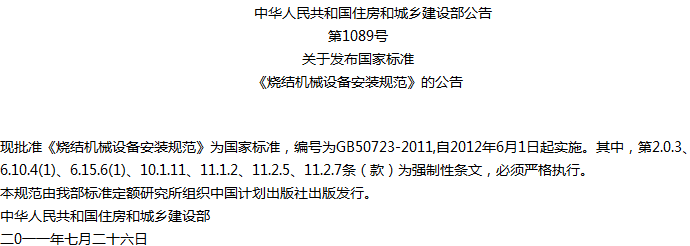 烧结机械设备安装规范收藏