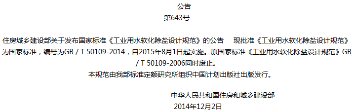 工业用水软化除盐设计规范收藏