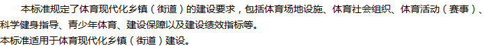 当前位置:首页 > 标准规范 > 体育现代化乡镇(街道)建设规范 <返回