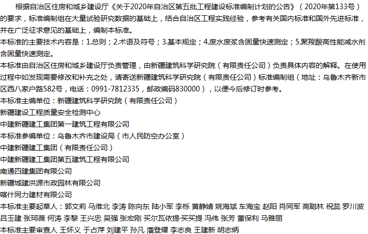 预拌混凝土生产废水废浆及减水剂含固量快速测定技术标准收藏