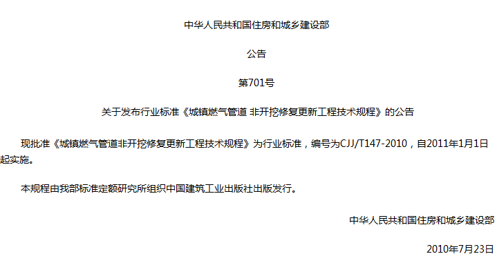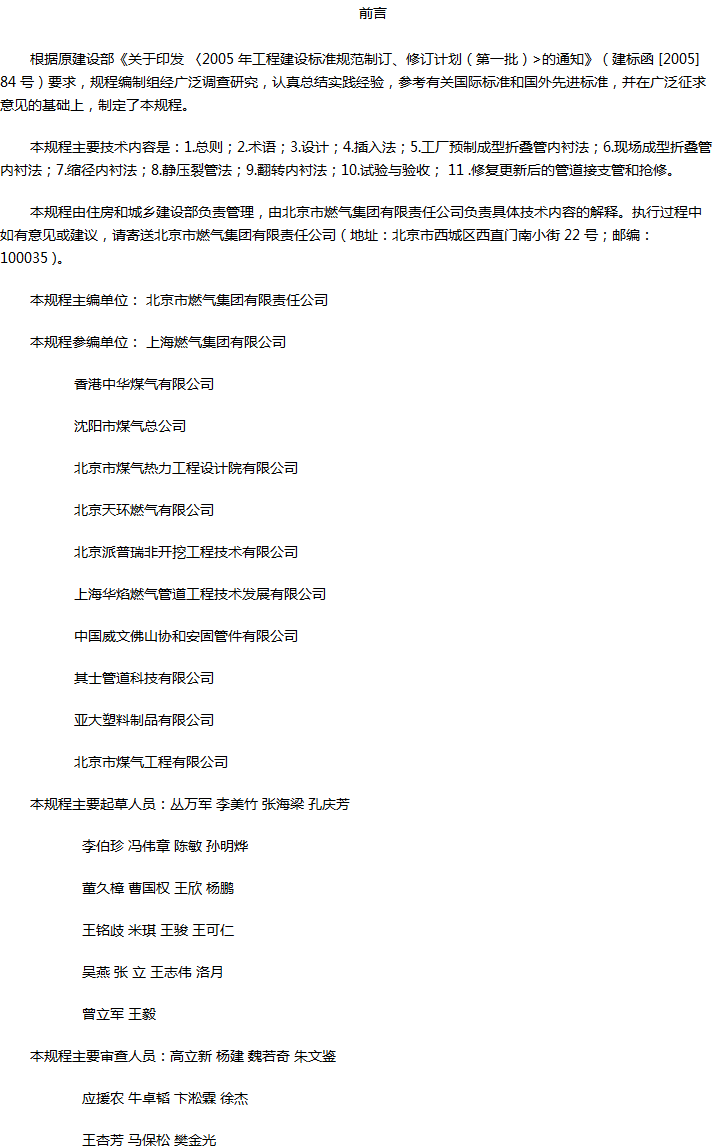 城镇燃气管道非开挖修复更新工程技术规程收藏