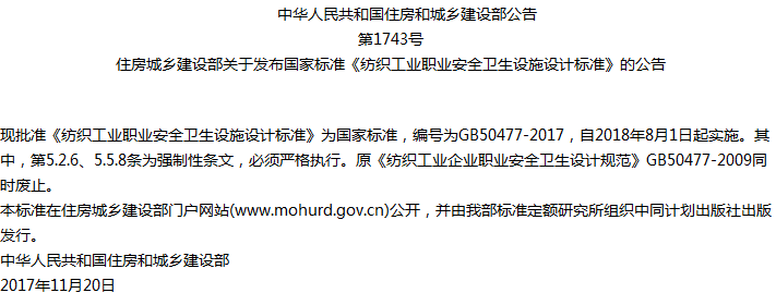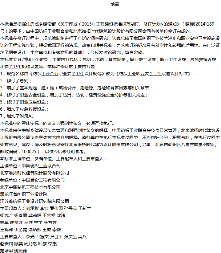纺织工业职业安全卫生设施设计标准收藏