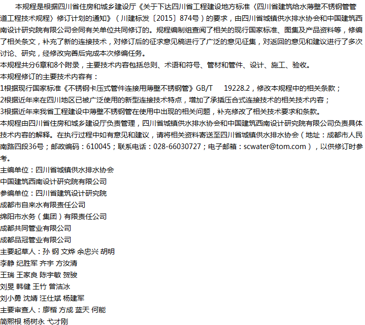 四川省建筑给水薄壁不锈钢管管道工程技术规程收藏