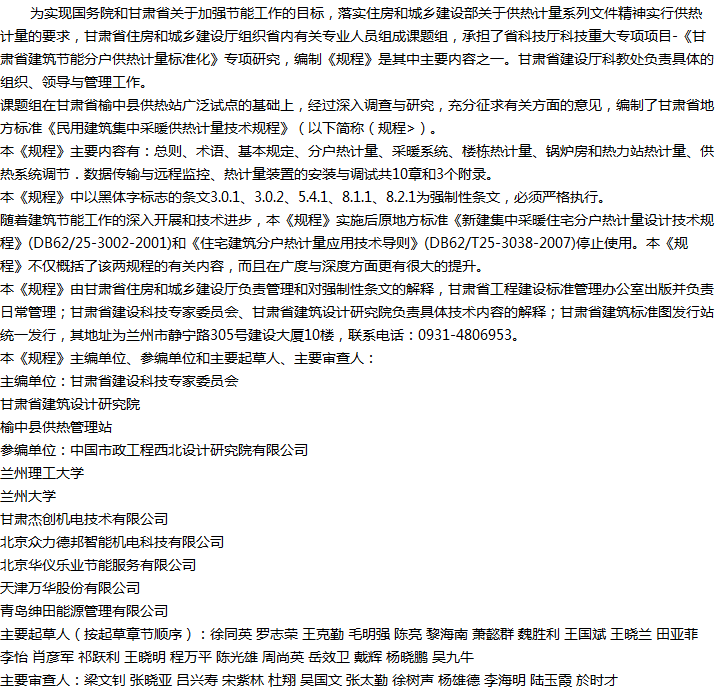 民用建筑集中采暖供热计量技术规程收藏