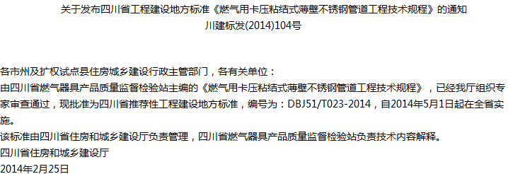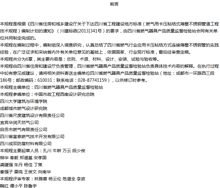 燃气用卡压粘结式薄壁不锈钢管道工程技术规程收藏