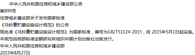 马铃薯贮藏设施设计规范收藏