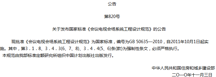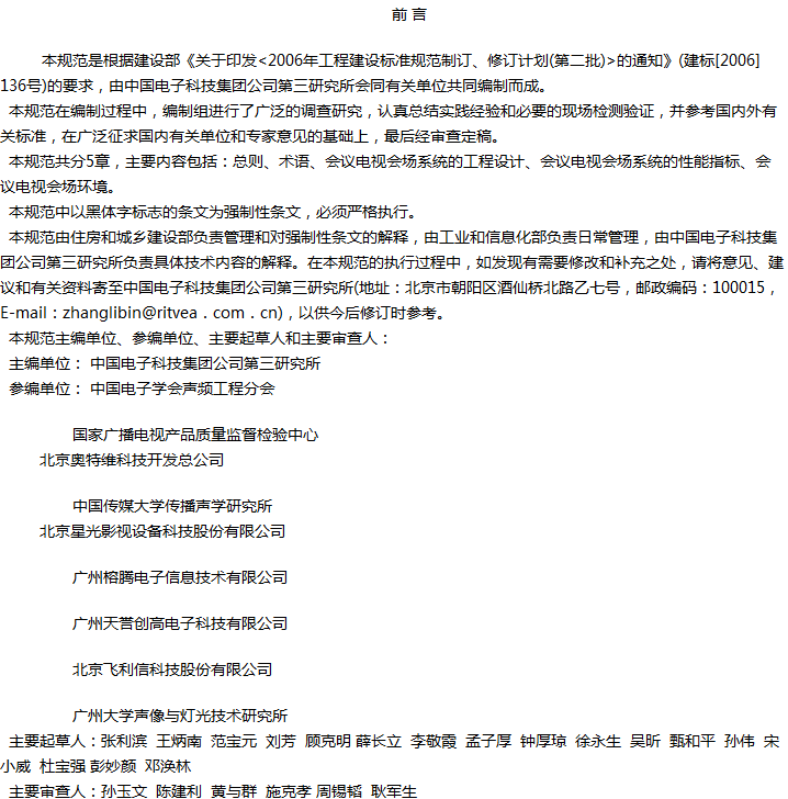 会议电视会场系统工程设计规范收藏