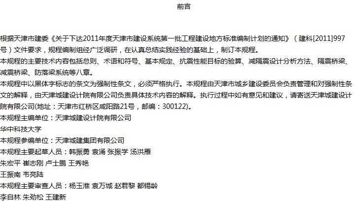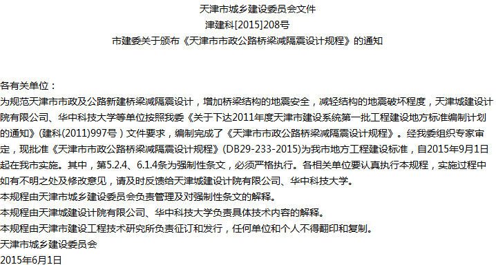 天津市市政公路桥梁减隔震设计规程收藏